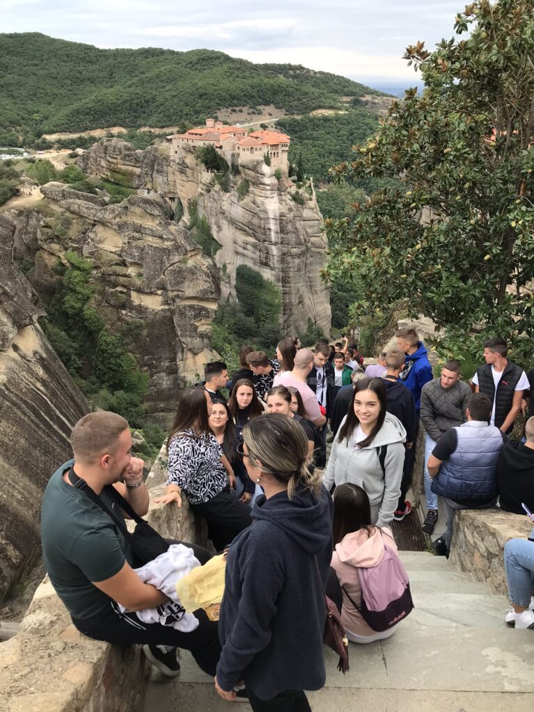 Током панорамског разгледања уживали су у предивним и нестварним предјелима, манастирима (укупно 6) подигнутим на тим стијенама, а током овог излета посјетили су манастир Велики Метеор.