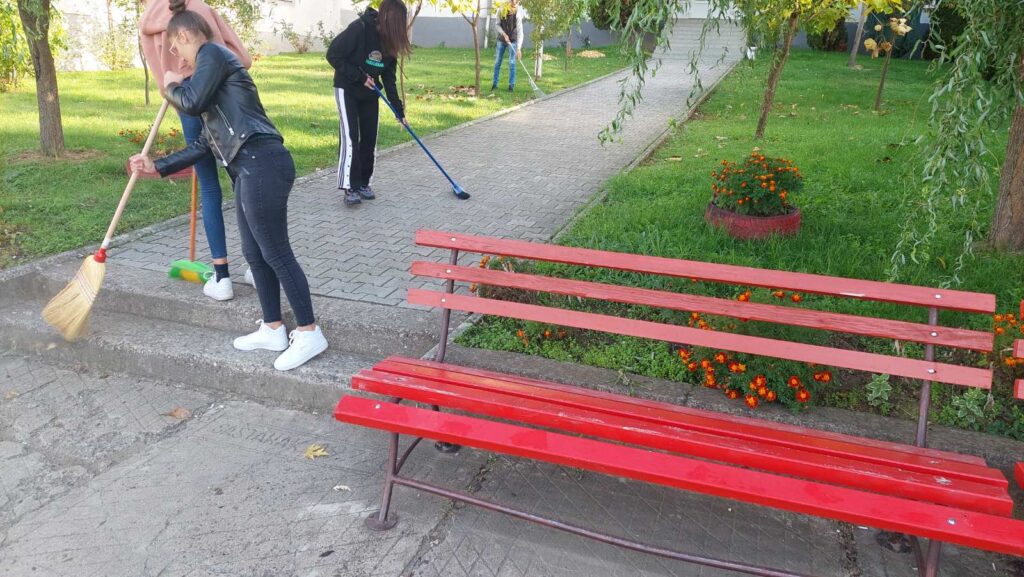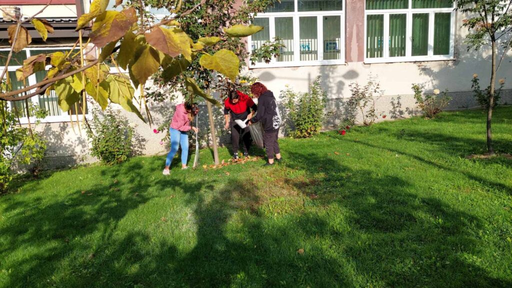 Ученици I-2 царинских техничара са својим разредником Бориславом Марићем искористили су јесење сунце за уређење нашег школског дворишта.