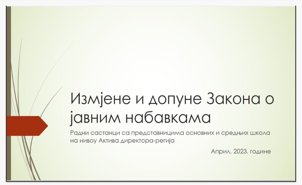 Дана 26.04.2023.године у Лакташима у скупштинскиј сали градске управе у организацији Министарства просвјете и културе Републике Српске одржан је радно- едукативни састанак на тему јавних набавки. Састанку су присуствовале, директорица, Сузана Шврака, рачуновођа Светлана Кораћ и секретар Борјана Тешић.