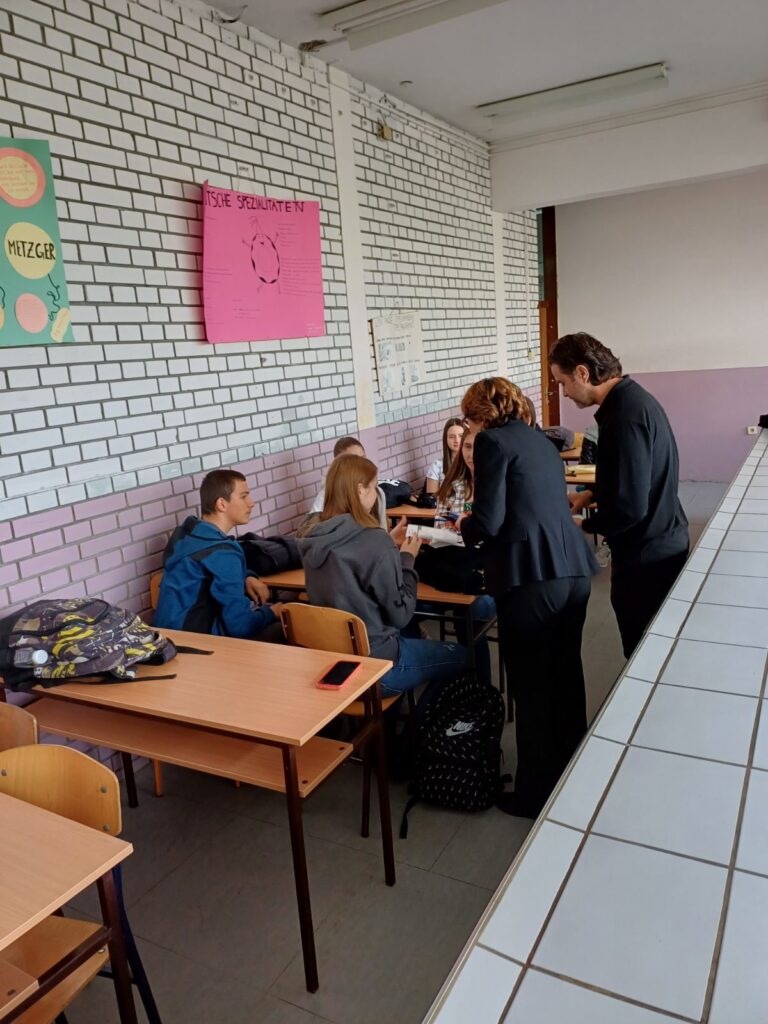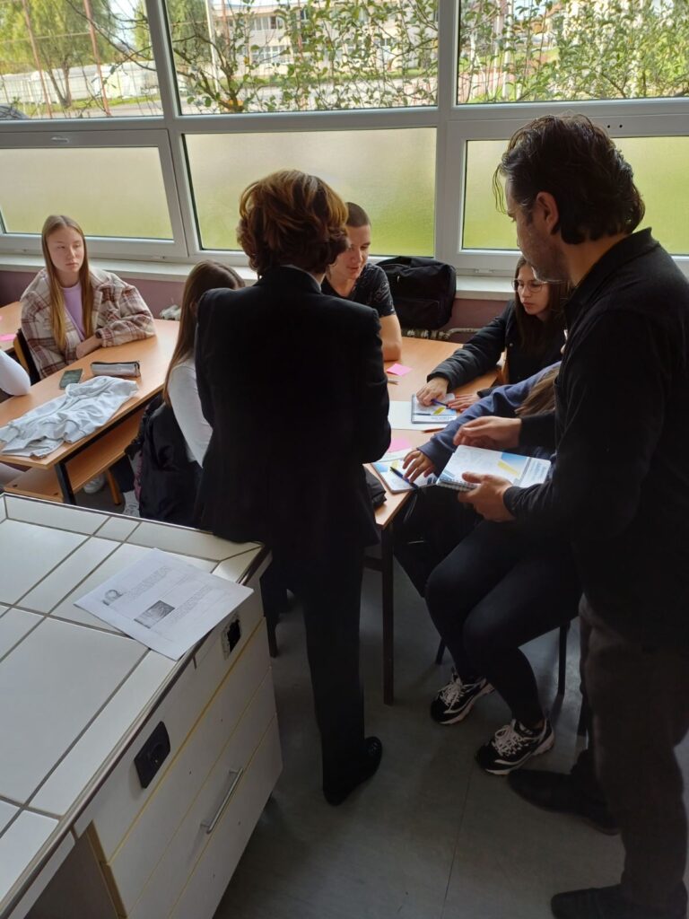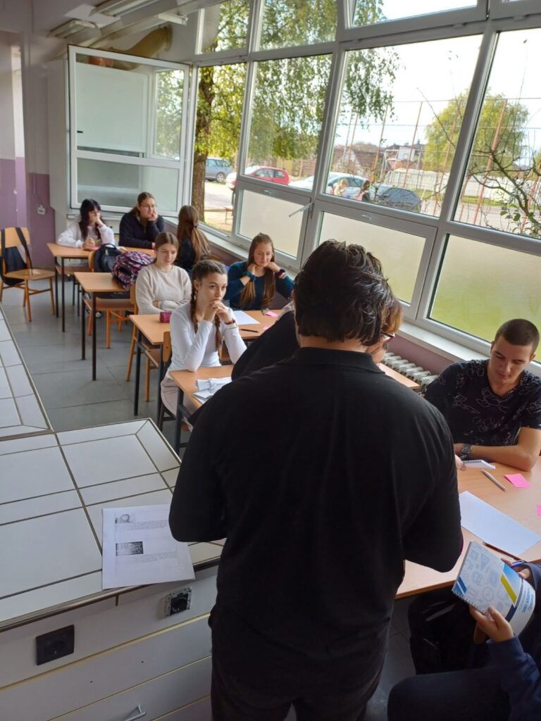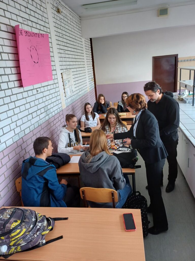 Директорица школе је, заједно са педагогом, присуствовала часу факултативног предмета Хуманост и безбједност, који је ове школске године експериментално уведен у 20 основних и 20 средњих школа међу којима је и наша, а који реализује професор Далибор Турудић. Ученици су изјавили да су им садржаји које обрађују јако занимљиви и надасве корисни. Такође, начин рада, који је заснован на радионицама, додатно мотивише ученике за присуство овом новоуведеном наставном предмету.