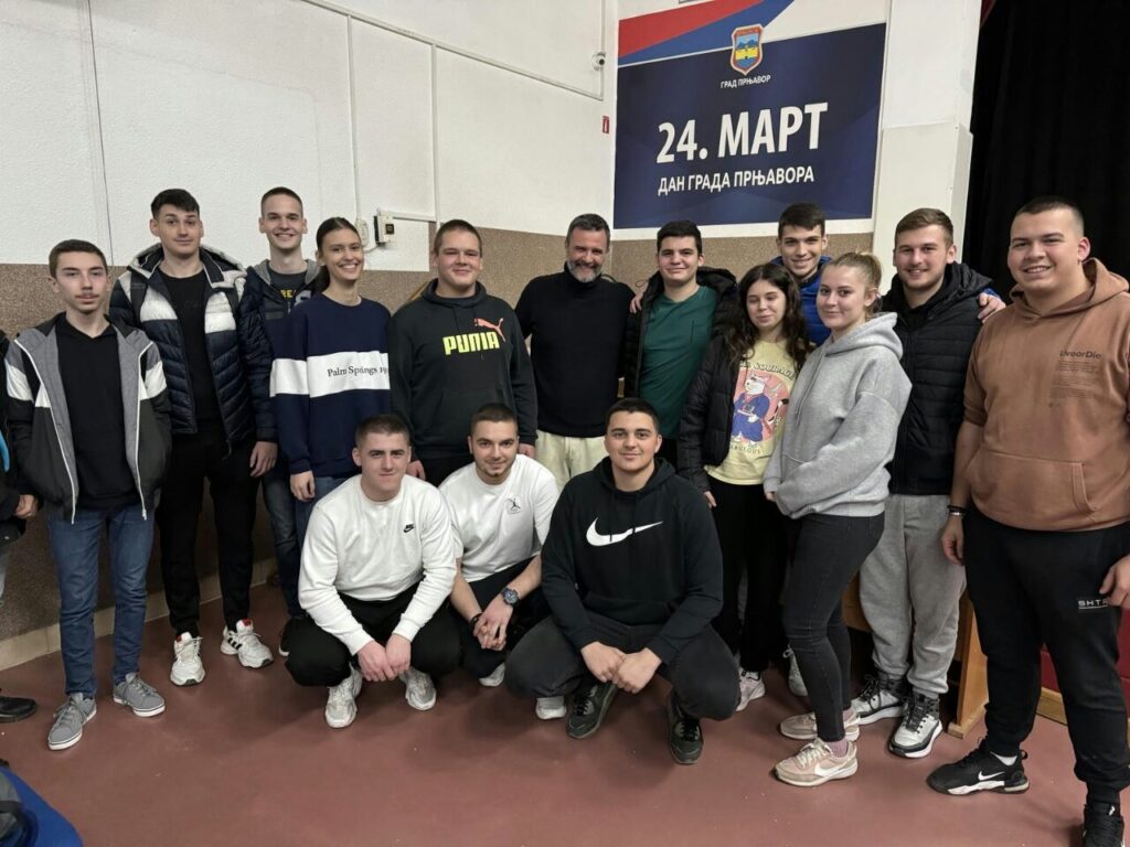 175 ученика наше школе је,у пратњи четири професора, присуствовало позоришној представи “Тесла-прилагођавање анђела”, у извођењу популарних глумаца Момчила Оташевића и Владимира Посавца Тушека. Представа је изведена у Центру за културу Прњавор у два термина, за прву и другу смјену. Неколико ученика је искористило прилику да се фотографише са популарним глумцима.