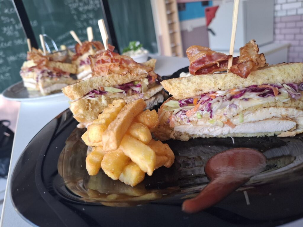 Данашња пракса вриједних првачића одјељења I7 кувара и специјалитети дана, клуб сендвич и крофне са чоколадом.