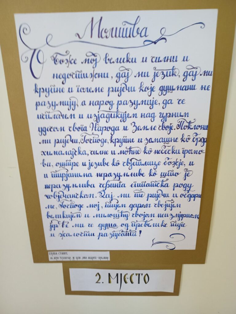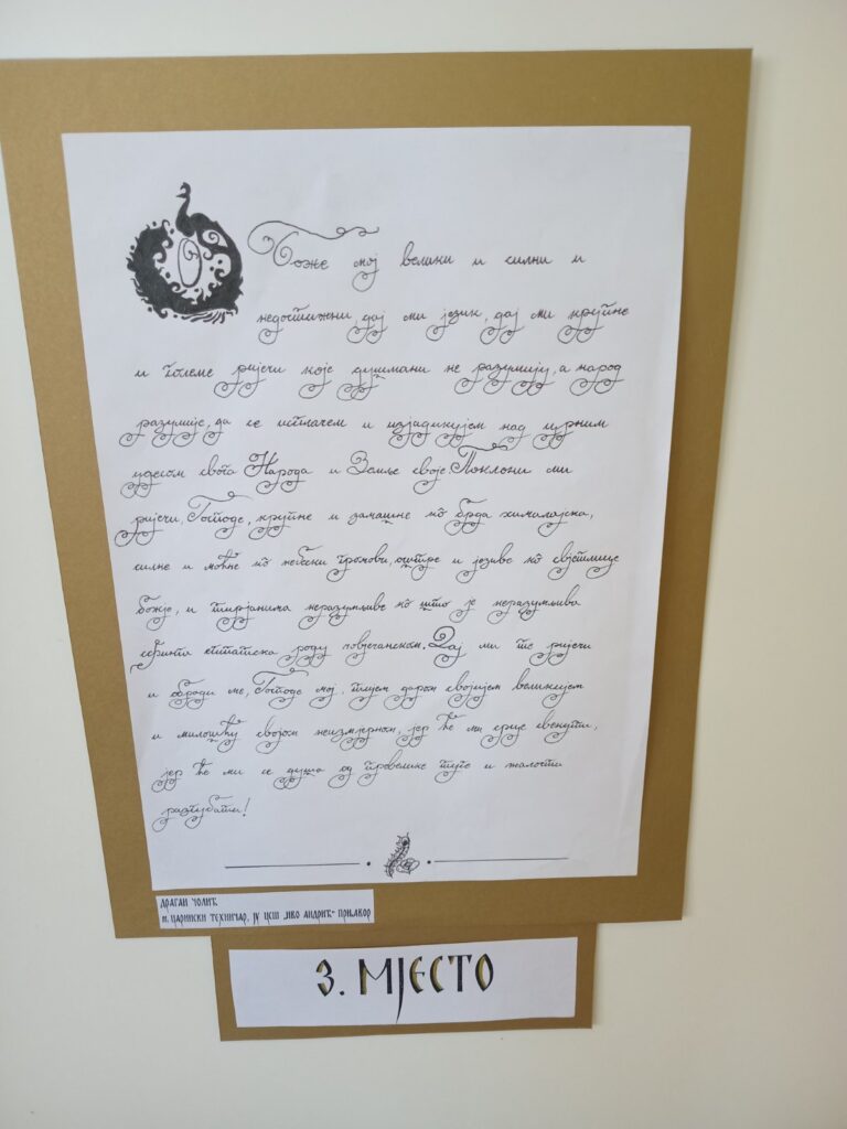 УСПЈЕХ НА КОНКУРСУ ЗА ИЗБОР НАЈЉЕПШЕГ ЋИРИЛИЧНОГ ПИСМА