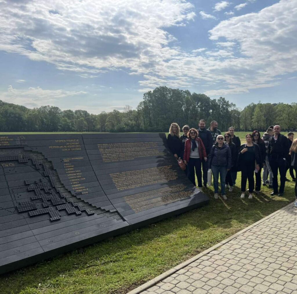 Ученици наше школе, њих 170, заједно са својим професорима и директорицом школе, присуствовали су у недјељу, 27. aприла 2025. године, у Доњој Градини, централној манифестацији обиљежавања 80 година од пробоја логораша из злогласног логора Јасеновац. Неки од њих по први пут су посјетили најбројнији српски град послије Београда, град најбучније тишине која настањује срца и душе свих који у њега кроче, не дајући да његови становници и њихова страдања икада буду заборављени! Без сјећања на њих и њихову жртву и наши идентитети били би одсјечени од своје суштине! Човјек без идентитета само је празна љуштура… Зато, сјећајмо се! Не дозволимо протоку времена да из наших срца истисне љубав и поштовање према жртвама тог, здравом разуму, непојмљивог злочина!
