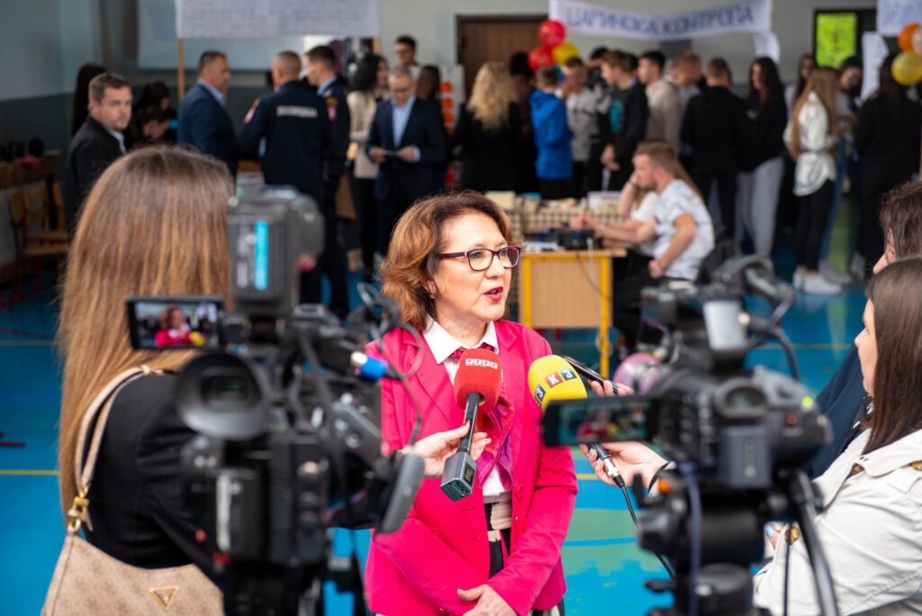 Директорица школе, госпођа Сузана Шврака, је симболично прогласила сајам отвореним пресјецањем црвене врпце.