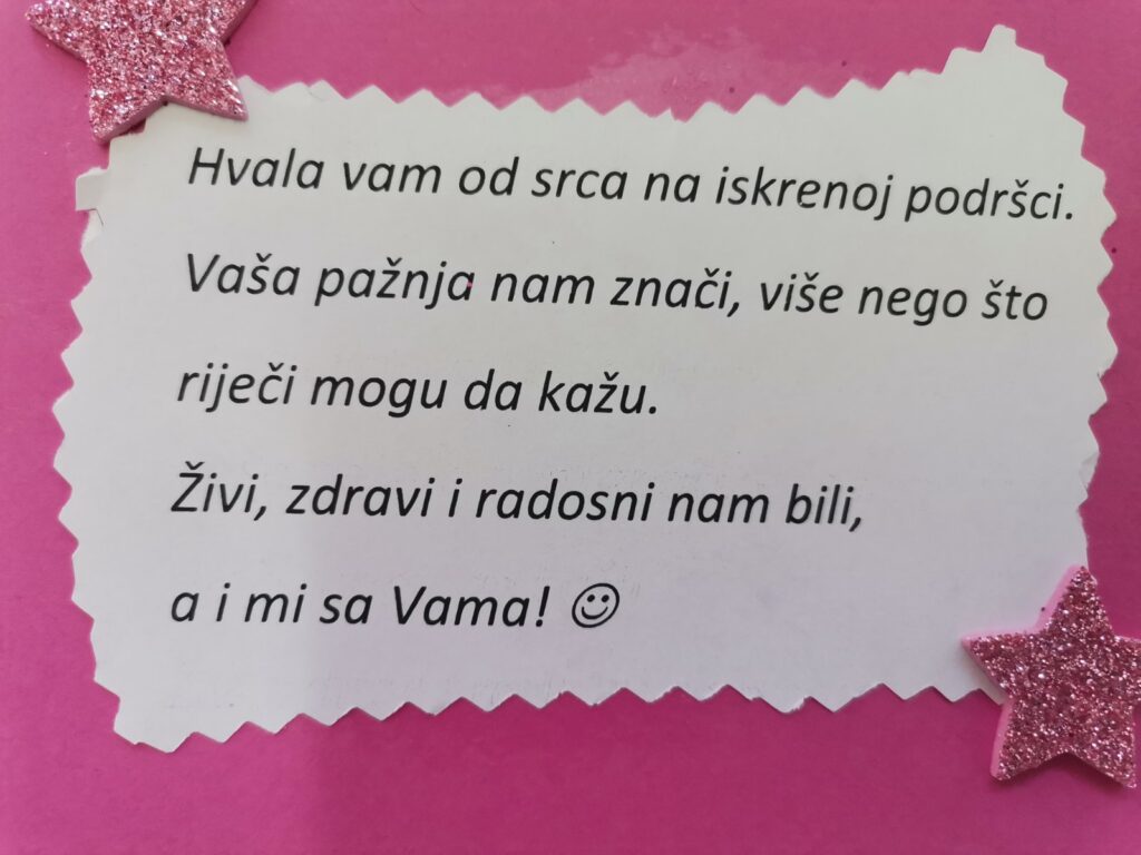 Данас су нас, поводом Дјечије недјеље, посјетили наши другари из Дневног центра “Невен” , дружили се и радовали са нама, добили лијепе фризуре од наших фризера и оставили нам дивне поклоне и захвалнице. Уживали смо у сусрету, а биће их још, на обострану радост!